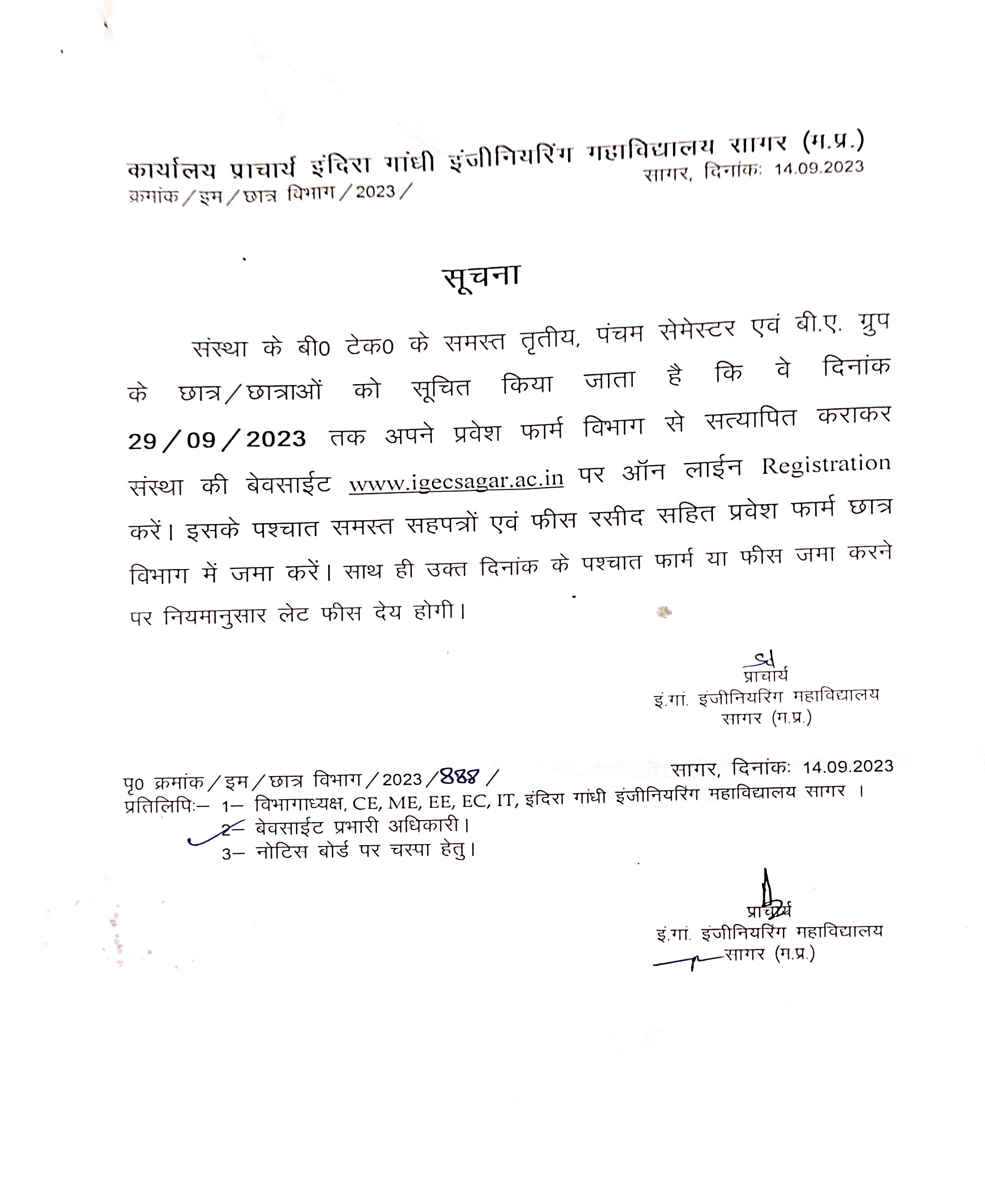 - Notice for B.Tech. 3rd,5th,7th, sem. and B.A. group students submit your online fees on date before 09.09.2022