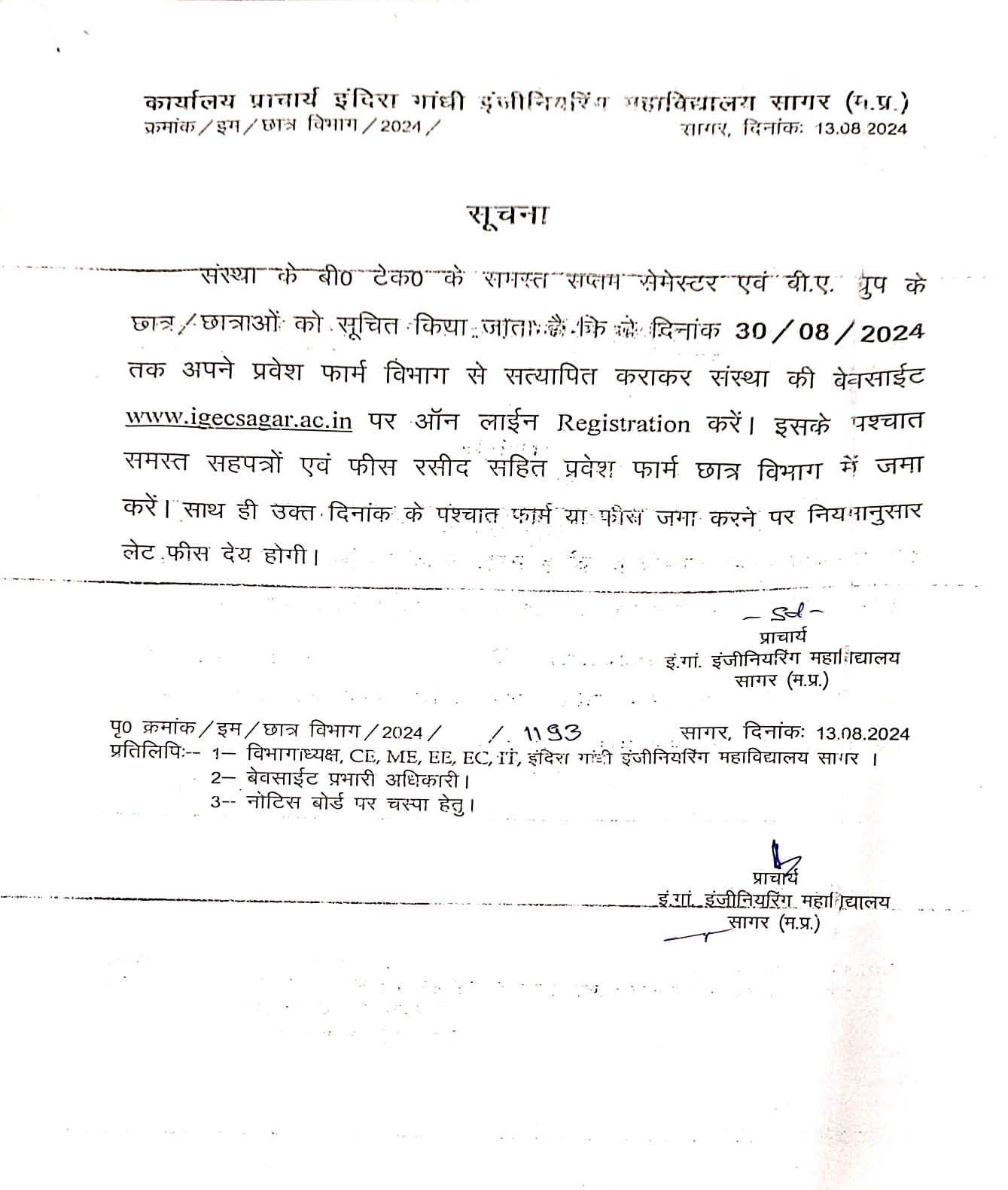 - Letter regarding online registration for 7th sem students 13/08/2024