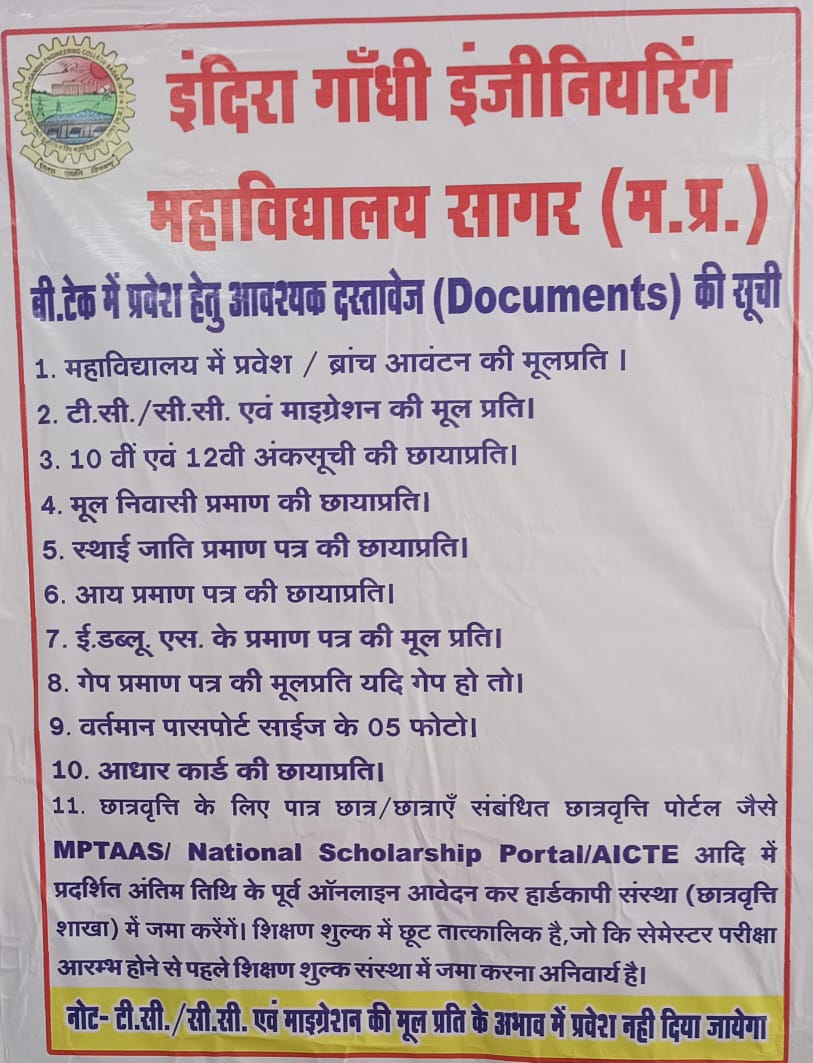 - B.tech. admission documents list